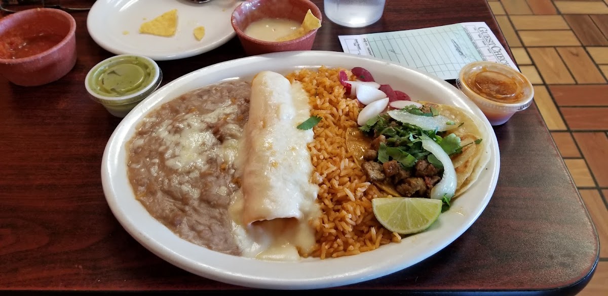 Chicken Enchilada and Steak Taco